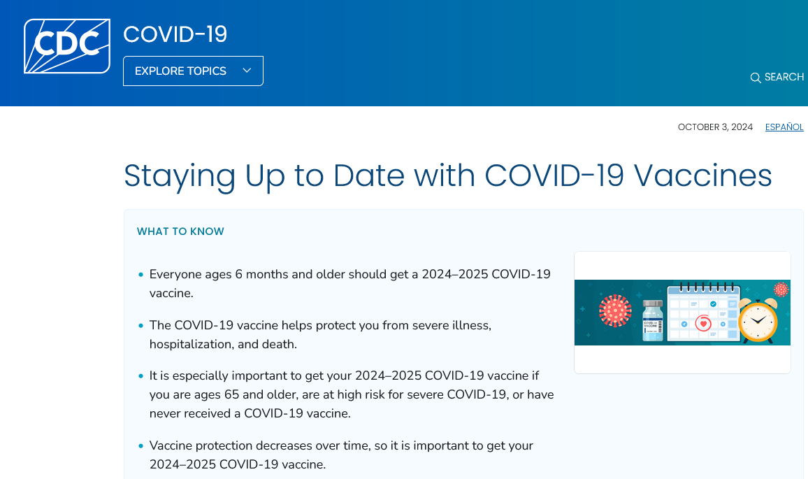 Let me take a moment to share the CDC’s current COVID-19 jab guideline for your 6-month old babies. If your child has never received a COVID vaccine (which most 6 month old babies would NOT have), CDC wants your child to have either 2 doses of the 2024–2025 Moderna vaccine OR 3 doses of the 2024–2025 Pfizer-BioNTech vaccine.
